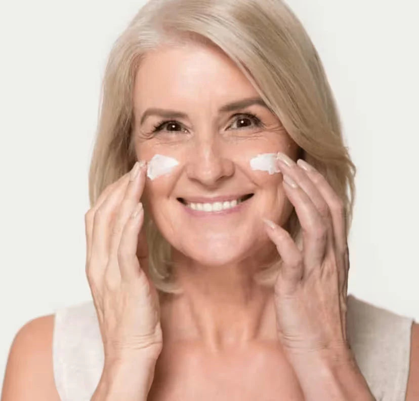Mature women have 50% less sebum production, creating this frustrating paradox: dehydrated skin that feels tight on the cheeks, but still shines on the forehead and nose.