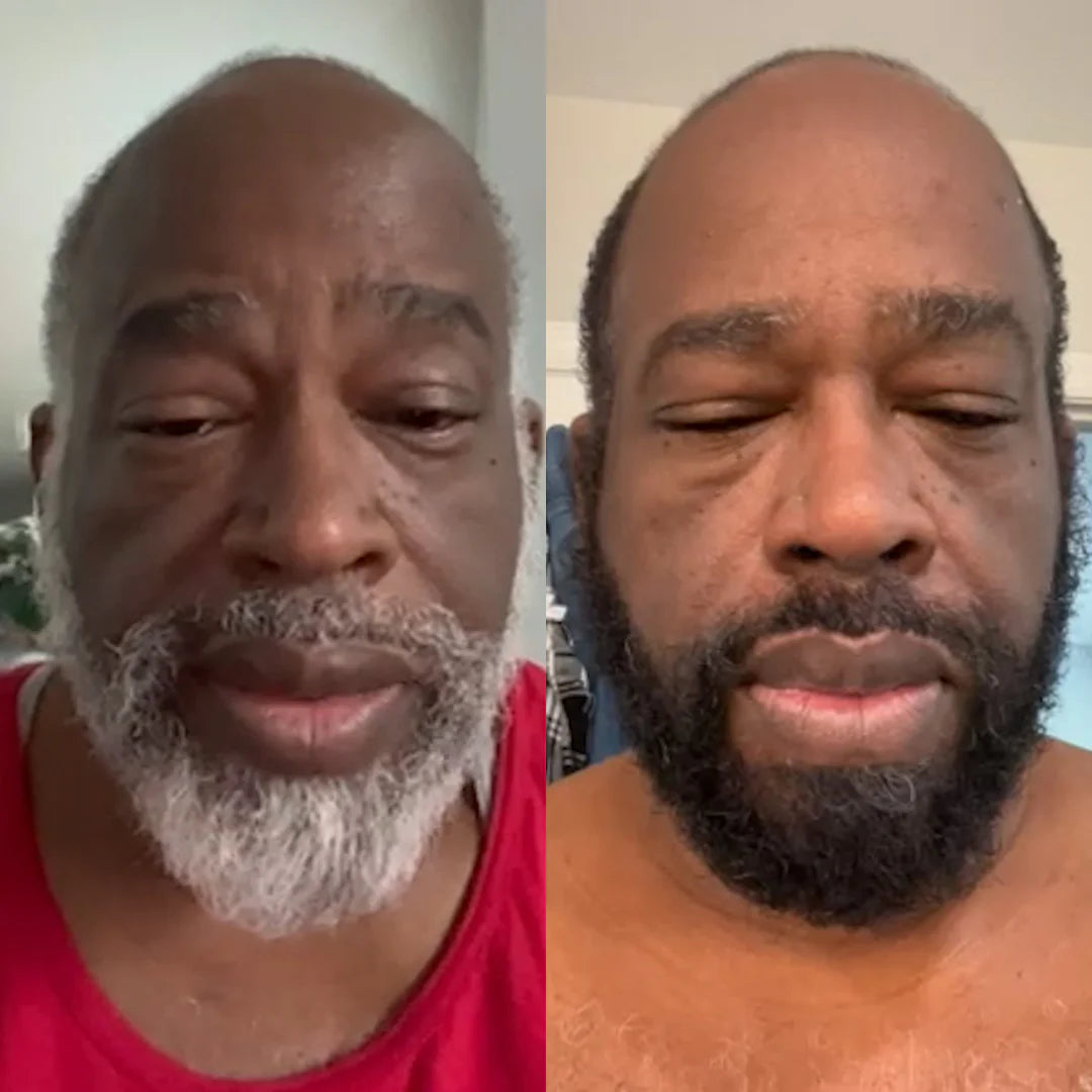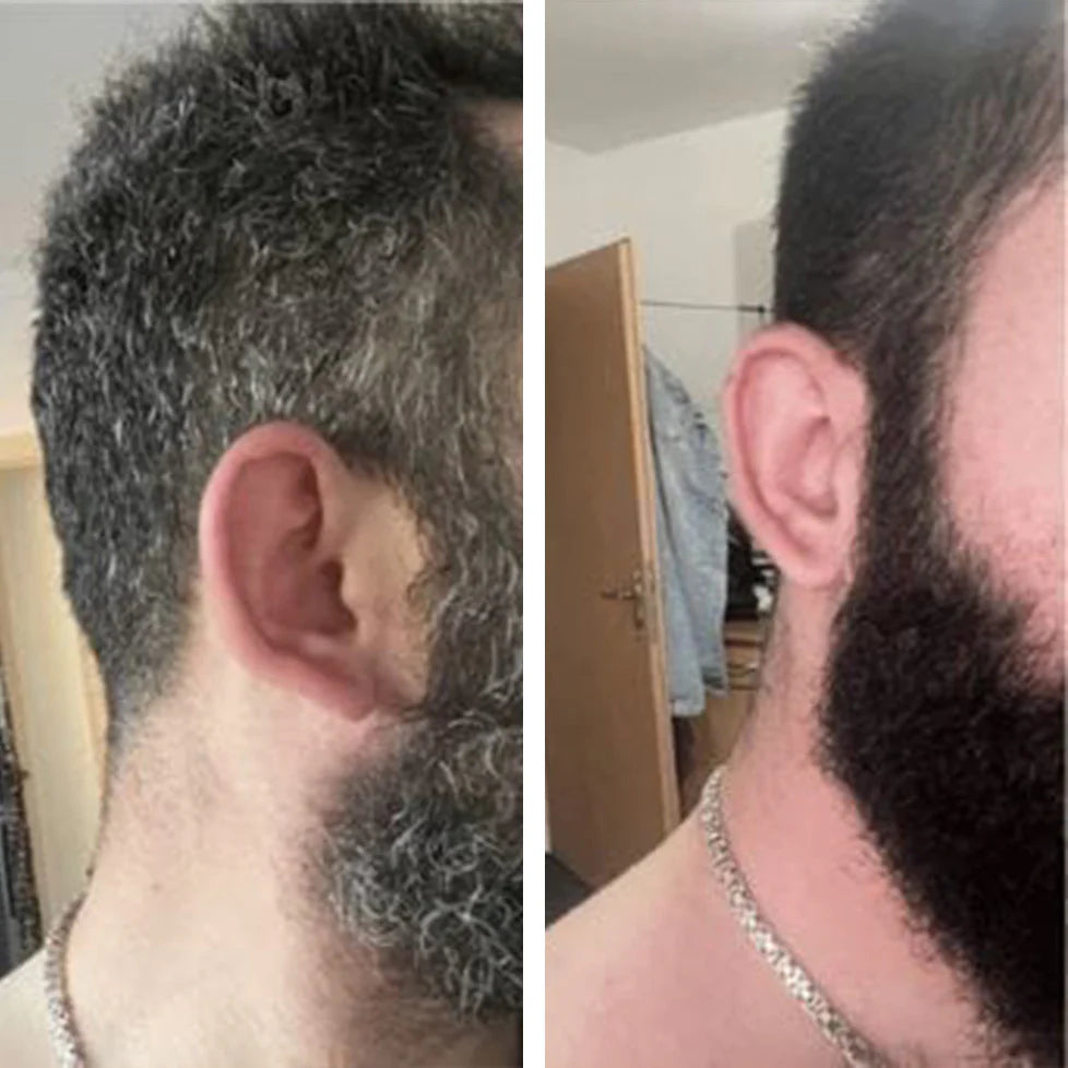 Your gray hair and beard will instantly regain their natural tone — evenly, without stains or residue.